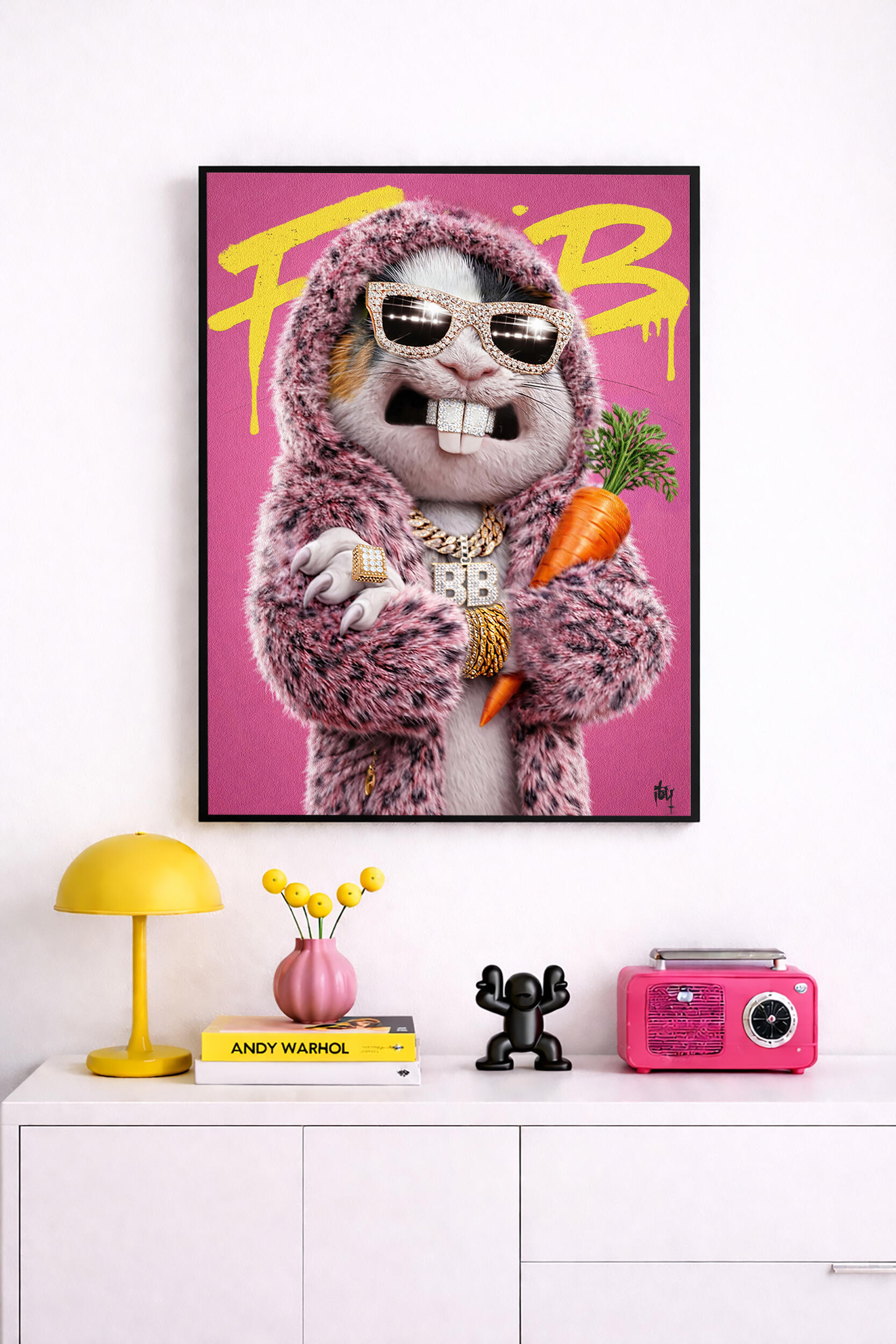 " Hungry " !! Hungry est un cadre en aluminium en textures mixtes de 45X60 cm, mettant en scène Bradley, mon petit cochon d'inde iconique - 500€
